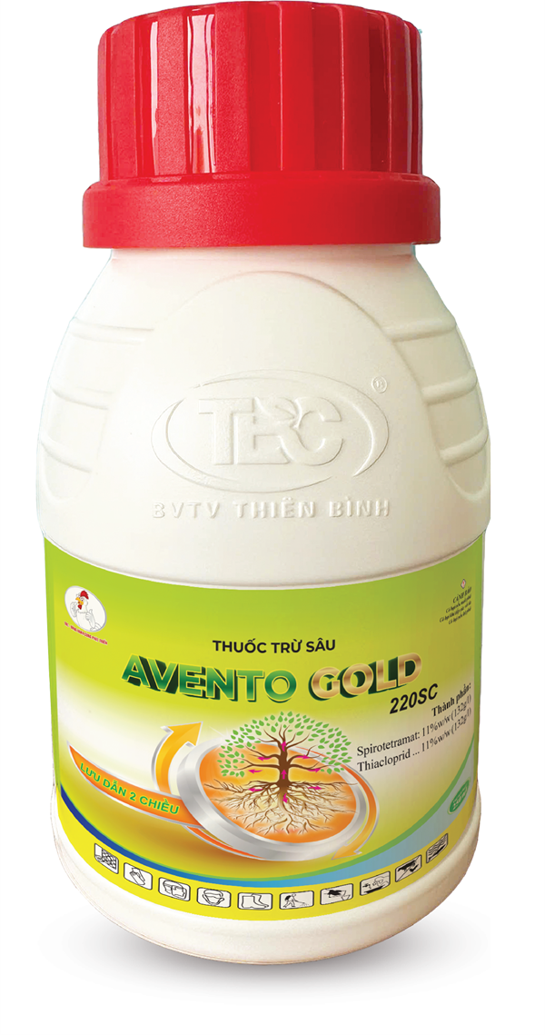 - AVENTO GOLD 220SC là thuốc trừ sâu rầy thế hệ mới, với cơ chế tác động vị độc, lưu dẫn hai chiều. Thuốc có hiệu quả cao, kéo dài trên nhiều loại côn trùng chích hút và các loại côn trùng khác.