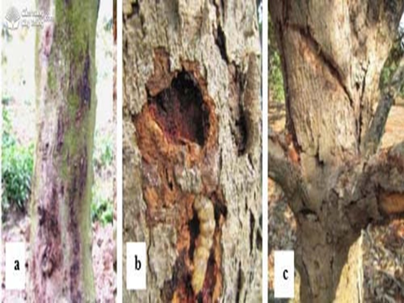 Vị trí xâm nhập và đường đi của sâu trong thân cây tạo điều kiện cho nấm Phytopthora tấn công cây.